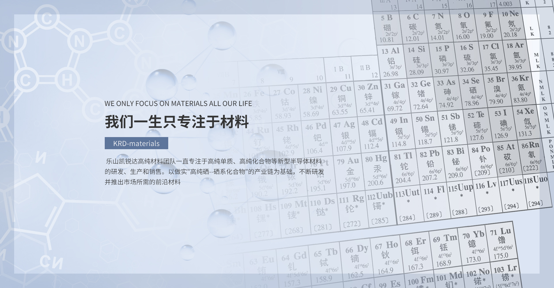 樂(lè)山凱銳達(dá)高純材料團(tuán)隊(duì)一直專注于高純單質(zhì)、高純化合物等新型半導(dǎo)體材料的研發(fā)、生產(chǎn)和銷售。以做實(shí)"高純硒--硒系化合物"的產(chǎn)業(yè)鏈為基礎(chǔ),不斷研發(fā)并推出市場(chǎng)所需的前沿材料。專業(yè)人才與技術(shù)方面的優(yōu)勢(shì),為公司的技術(shù)創(chuàng)新、產(chǎn)品開(kāi)發(fā)和產(chǎn)業(yè)化發(fā)展,打下了堅(jiān)實(shí)的基礎(chǔ)。至今,研制的高純材料多達(dá)300余種,在國(guó)內(nèi)高純領(lǐng)域處于領(lǐng)先地位。